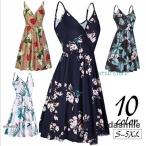 ワンピース キャミソールワンピース カシュクールワンピース 大きいサイズ レディース 女性 婦人服 袖なし Vネック フレア ミディアム 膝丈 Aライ