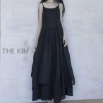 5colorsレディース ノースリーブ インナーウエア キャミワンピース ロング綺麗め 4段フリルロリータ ドレスマキシ丈 ミディアム丈 ゆったり 重ね着 キャミソール マキシワンピース シンプル ルームウェア 体型カバー ゆったり 綿麻 無地 インナーワンピース