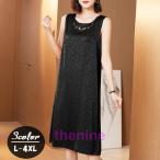 【限定全品最大30%OFFクーポン配布】ワンピース レディース ノースリーブ ポケット付き 着痩せ クルーネック Aライン 結婚式 二次会 パーティードレス ミディアム丈 膝上 体型カバー 大人可愛い きれいめ 40代 50代 60代 ブラック ホワイト S/M/L/XL/2XL