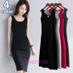 ワンピース タンクトップワンピ レディース 女性 タイト スリム ノースリーブ 袖なし 膝丈 Uネック 丸首 無地 単色 シンプル ひざ丈 ミディアム