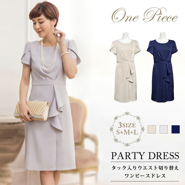 パーティードレス レディース 結婚式 ドレス 紺 黒 ワンピース 半袖 ミディアム 大人 ブラック グレー ネイビー お呼ばれ 20代 30代 ママ 母 OL
