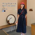 春 夏 デニムワンピース 半袖 レディース ワンピース 夏 ひざ丈 デニムワンピ シャツワンピース ハイウエスト 半袖ワンピース ミディアム