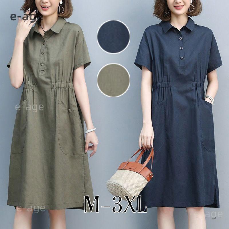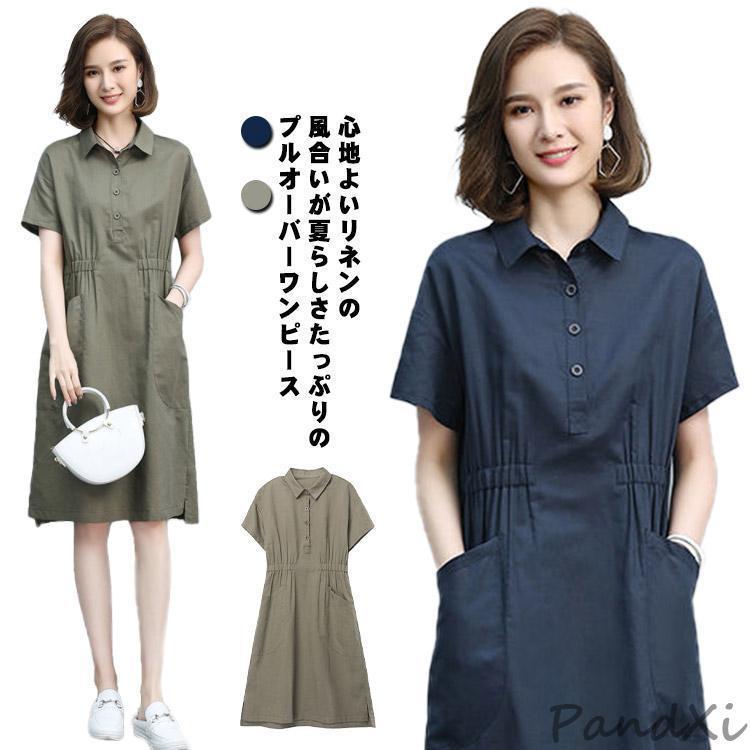ワンピース レディース トップス 夏 春 きれいめ 半袖 ゆったり 上品 おしゃれ かわいい カジュアル ミディアム 襟付き