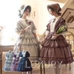 ロリータ服 ロリータファッション ドレスワンピース 4色 春秋 半袖 七分袖 フリル レース フレア ミディアム ひざ丈 ドレス ワンピ ワンピース