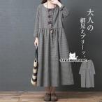 ワンピース レディース 長袖 ロングワンピース 綿麻ワンピース マキシワンピース ゆったり 春秋 きれいめ Aライン 上品 二次会 通勤 OL 着痩せ