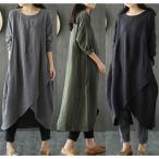 ワンピース レディース 30代 40代 50代 長袖 きれいめ ゆったりリネンワンピース ゆったり ミディアム丈