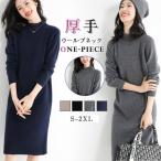 ウールニットワンピース ワンピース リブ ミディアム きれいめ 長袖 大人 ロング マキシ丈 秋冬 冬 大きいサイズ レディース ハーフハイネック