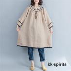 エスニック 長袖 ワンピース ゆったり 大きいサイズ アジアン ミディアム丈 無地 ロータス コクーン 蓮 ボヘミアン 春(2)