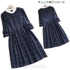 春 夏 ワンピース 長袖 ひざ丈ワンピース チェック柄 長袖ワンピース ミディアム 春秋 ドレス レトロ レース襟 チュニック お洒落