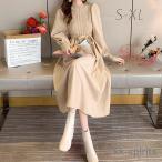 ワンピース 長袖 膝下 レディース 冬ワンピース 秋ワンピース 新作ミディアム丈ワンピースタイドスカート 痩せ見せ 切り替え エレガント 淑やか
