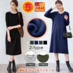 裏起毛 ワンピース レディース 秋 冬 秋冬 黒 紺 ミディアム ロング ミモレ 無地 長袖 ブラック カーキ グレー ネイビー Vネック Uネック 暖かい 温活 30代