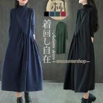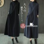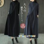 ワンピース レディース 秋 ロング丈 ハイネック マキシワンピース チュニック ドレス 長袖 ゆったり 無地 体型カバー 可愛い 着回し おしゃれ