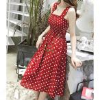 ワンピース ドレス レディース ファッション ワンピース ミディアム 膝丈 Aライン ワンピース キャミワンピ ノースリーブ フロントボタン 春夏 水玉 無地