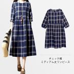ワンピース レディース チェック柄ワンピース 秋 冬 秋冬 ミディアムワンピ 体型カバー ワンピース ひざ丈 大人 20代 30代 40代 OL ママ 母 送料無料