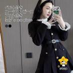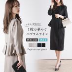 スーツワンピース レディース ミディアムワンピース 長袖 フリル 前ボタン ミニ丈 ベルト付き ポケット 着痩せ シンプル 美脚 春秋