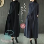 ワンピース ワンピ 長袖 ミディアム 秋 レディース ロング カジュアル おしゃれ 可愛い 体型カバー 大人 ゆったり 重ね着