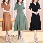 ワンピース 半袖 春 夏 レディース ロングワンピース プリーツ ミディアム丈 ひざワンピース カジュアル風 体型カバー 無地 ドレス ゆったり 着痩せ 40代