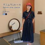 春 夏 デニムワンピース 半袖 レディース ワンピース 夏 ひざ丈 デニムワンピ シャツワンピース ハイウエスト 半袖ワンピース ミディアム