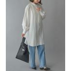 シャツワンピース ロングシャツ ワンピース ミディアム丈 長袖 シャツ レディース スリット入り チュニック ストライプ シャツワンピ 春夏