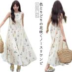 送料無料 ワンピース キャミワンピ ノースリーブ キャミソールワンピース 膝丈 ミディアム丈 レディース フロントボタン 春夏 花柄 無地 フラワー かわいい おしゃれ カジュアル 可愛い 大人女子 女性用 婦人用 S M L XL