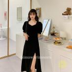 ワンピース ミディアムワンピース レディース 夏 スリット 黒 ブラック 半袖 セクシー キレイめ お出かけ 女子会 ショッピング デート カジュアル