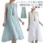 2枚セット!ワンピース 体型カバー 夏用 無地ワンピース ノースリーブワンピース 夏用ワンピース Aライン ワンピ ミディアム丈 ルームウエア 部屋着