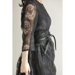 ワンピース (黒)バラの透かし絵浮かぶふんわりシルエットミディアムワンピース