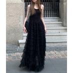 ワンピース チュール フロントリボン キャミソール ロング ワンピース