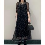 ドレス 「Callarus」ラメチュール使い2WAY刺繍デザインロング丈ワンピースドレス