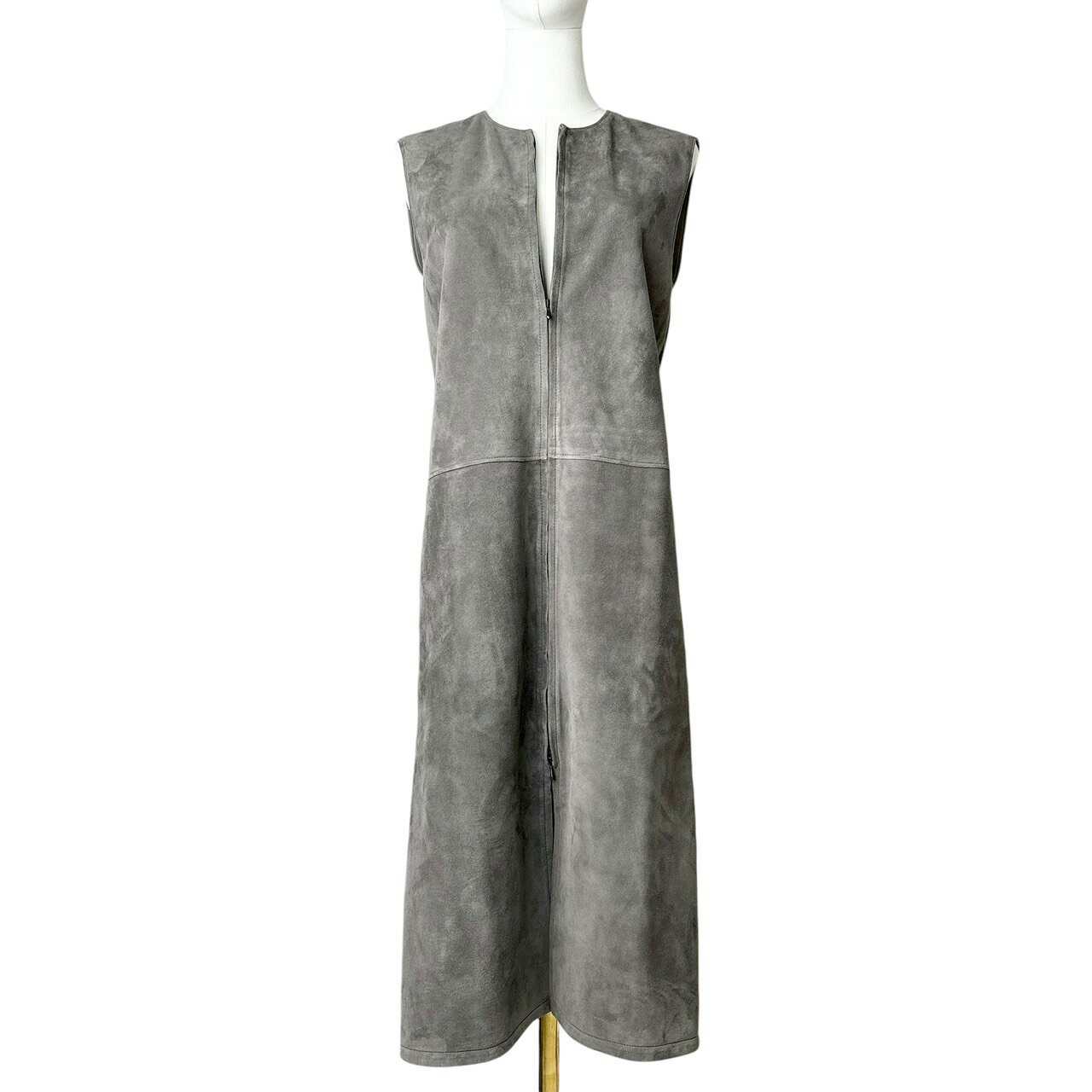 エルメス 【中古】HERMES マルジェラ期 スエード レザー ワンピース ロング丈 ノースリーブ ダブルジップ カーキ 36 Mサイズ相当