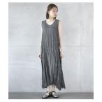 ワンピース ノースリーブロングワンピース無地(ワッシャー加工)