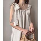ワンピース ショルダーリボンフレアワンピース