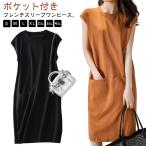 ノースリーブワンピース フレンチスリーブ ロングワンピース 夏 膝下丈 ワンピース 薄手 大人かわいい 無地 シンプル ノースリーブワンピース クルー