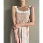 ワンピース 「取り外し可能パット付き」ダブルストラップリブキャミワンピース