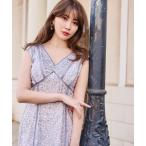 ワンピース 薄手ツイードフロントリボンラッフルキャミワンピース