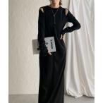 ワンピース オープンショルダー肩あき長袖フィンガーホールタイトロング丈リブワンピース