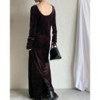 ワンピース 長袖ロング丈バックオープンベロアワンピース