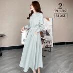 ワンピース シャツワンピース 長袖 レディース ロングワンピース マキシワンピース ギャザー マキシ丈 大人可愛い 大きいサイズ きれいめ 春 夏