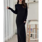 【18%OFFクーポン☆】サイドスリットニットワンピース クルーネック タートルネック ハイネック ロング丈 マキシ丈 ゆったり 黒 無地 M L 厚手 ニット ワンピース 長袖 きれいめ 秋 冬 ロング ゆったり ミリアンデニ