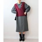 ワンピース 「アンチピリング/ウォッシャブル」ヴィンテージライク ダンボールカットソーロングスリットワンピース