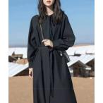 ワンピース バルーン袖キーネックロングワンピース