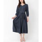 シャツワンピース サイドレースアップヘムフレアシャツワンピース