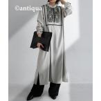 ワンピース 「mily bilet」華やかさと上品さを纏う。パール使いレースカラーニットワンピース