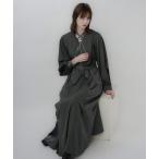 シャツワンピース quaranciel:「洗濯機可能」ダブルクロス スタンドカラー ポケット シャツ ワンピース