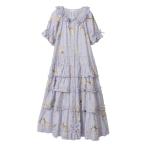 45R インドカディブーケストライププリントのパフブリッジドレス フォーティファイブアール ワンピース・ドレス ワンピース ブルー【送料無料】