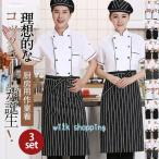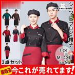 コックコート コックシャツ 長袖 コック服 セットアップ 3点セット メンズ トップス エプロン 帽子 制服 パン屋 コックウェア レディース