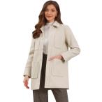 Allegra K レディース ワークショートコート ターンダウンカラー シングルブレスト 長袖 冬用コート ポケット付き ベージュ L