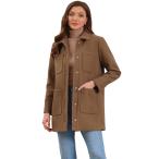 Allegra K レディース ワークショートコート ターンダウンカラー シングルブレスト 長袖 冬用コート ポケット付き ブラウン XS