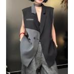 コート アウター ボアファーMIXパッチワークロングベスト レディース