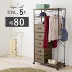 (タイムセール中) ワードローブ 幅80 高さ155cm 引き出し5杯 コート キャスター付き